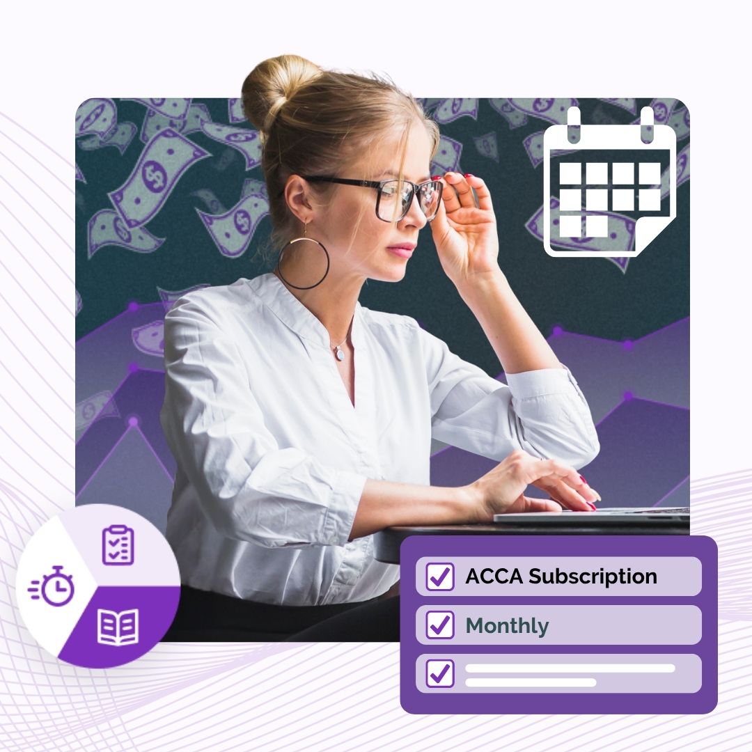 Study one ACCA paper at a time with a low-cost, rolling subscription – one paper at a time. The ACCA Monthly Subscription gives you syllabus-mapped materials, lots of practice and timed mocks for the paper you’re studying — plus the freedom to switch papers whenever you want. It’s an affordable, flexible way to progress through Applied Knowledge → Applied Skills → Strategic Professional papers.