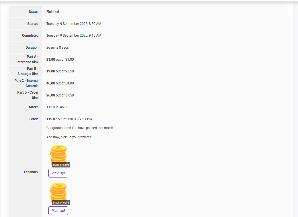 - 1 or 3 x P3 mock exams mimicking the actual exam environment